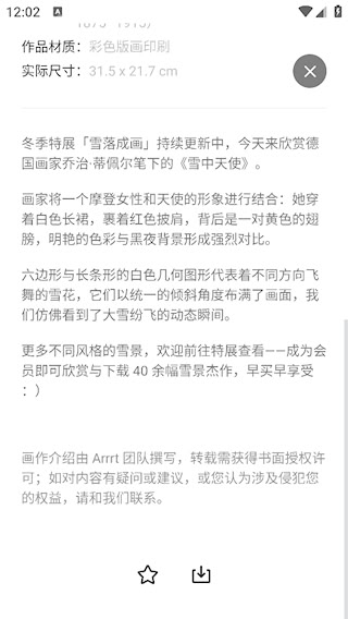 3、Arrrt内容更新机制注重审美教育规律,每日单幅的节奏符合深度学习需求。作品选择兼顾经典性与新鲜感,避免信息过载的同时保持探索乐趣。