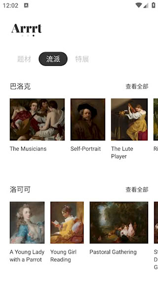 4、流派分类区集中展示各艺术运动代表作,包括巴洛克、印象派等风格详解