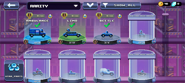 9、在奖品机中使用收集到的虚拟点数,可在游玩过程中解锁各类车辆和赛场。