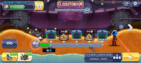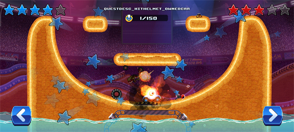 3、采用经典街机式左右按键操控,操控中暗藏玄机,长按可触发 “氮气翘头” 特技,让前轮成为攻击武器,需注意保持车身平衡,微操技术决定最终走向。