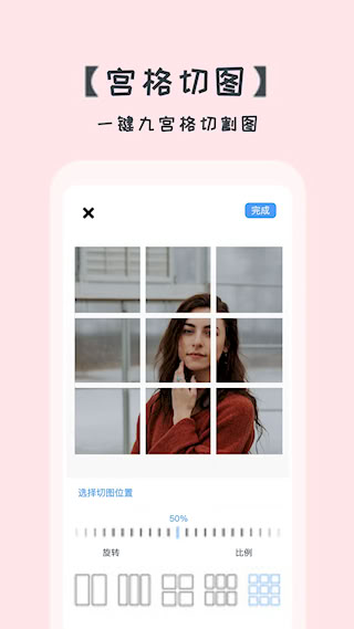 3、支持将单张图片快速分割为九宫格或其他网格样式,适配社交媒体平台的多图发布规则,实现个性化展示效果。