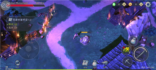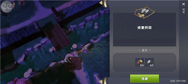 9、之后根据指引,在周边区域收集木头和石头,集齐材料后即可完成桥梁修复。