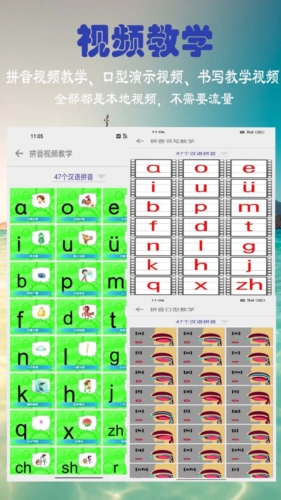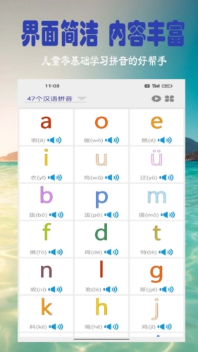 5、系统拼音教学:完整涵盖24个韵母、23个声母及16个音节的读写训练课程。