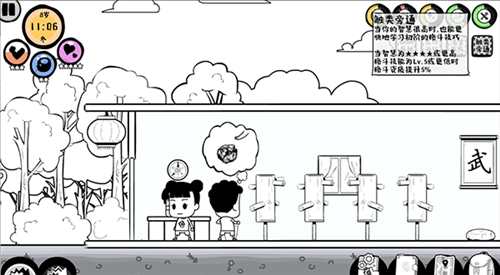 -第四个buff是(良性循环),有钱去武馆,资质不是满星,必定触发。毕竟技能都没学。作用是格斗资质增加5%。