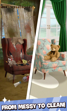 2、目标与核心体验:当房间清洁度达到 100% 时,会触发彩虹光效绽放的视觉反馈,生成清洁前后的对比图分享功能;整体节奏轻松舒缓,操作方式简单易上手(仅需点击或拖动屏幕即可),能有效帮助缓解压力;可通过完成各类清洁任务,解锁新清洁工具与关卡,获取对应奖励并用于装饰房间,形成持续吸引探索的游玩循环。