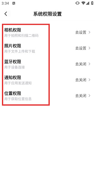 4、在权限配置界面,可对相机访问、相册读取、消息推送等多项权限进行独立管理。