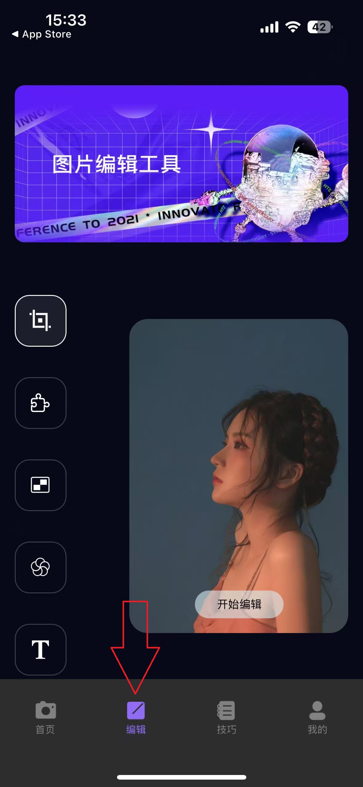 使用方式:点击“开始编辑”导入照片,使用提供的编辑工具进行调整。