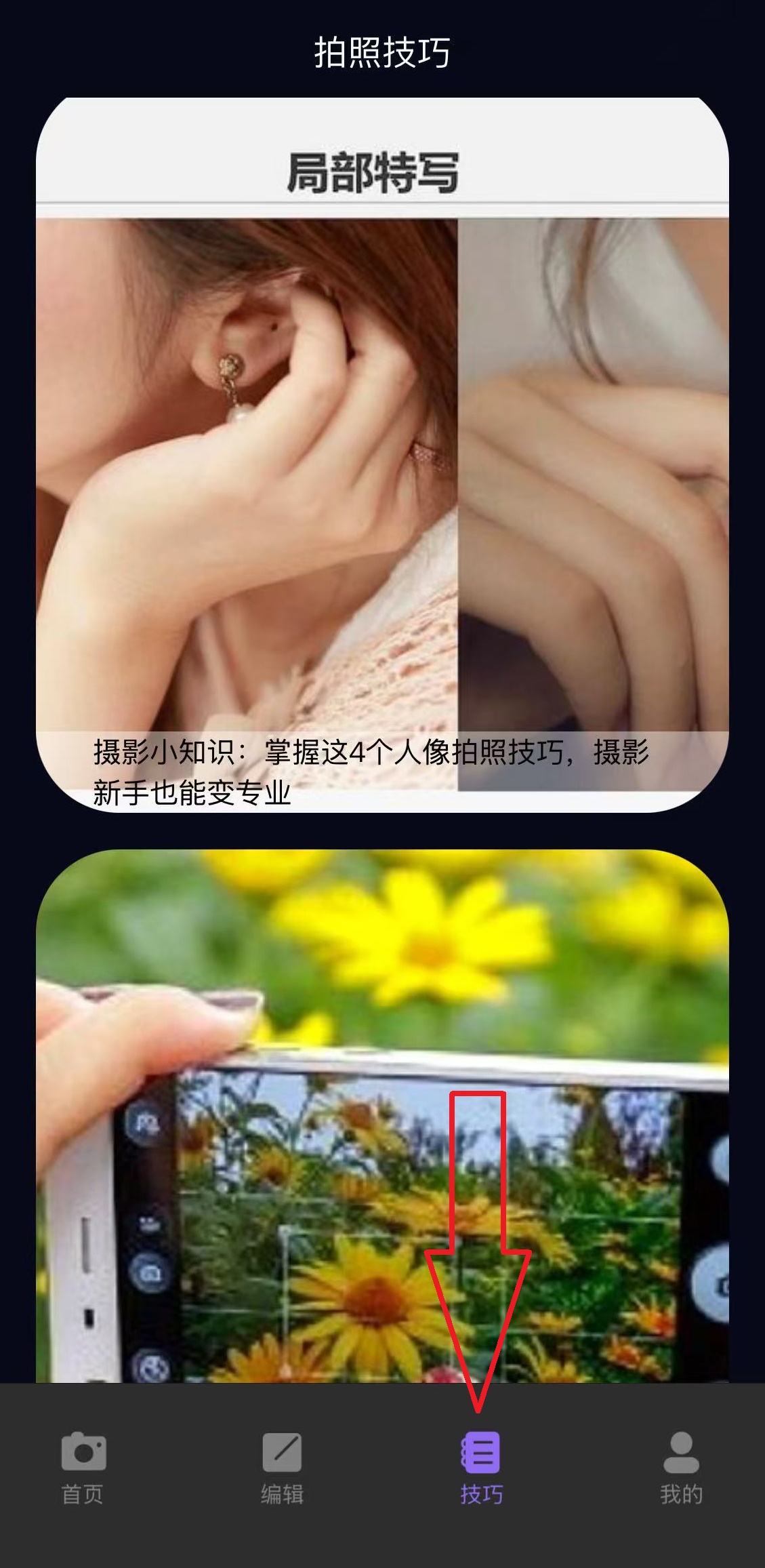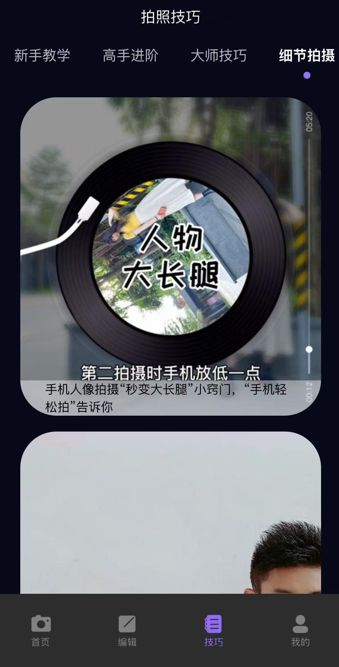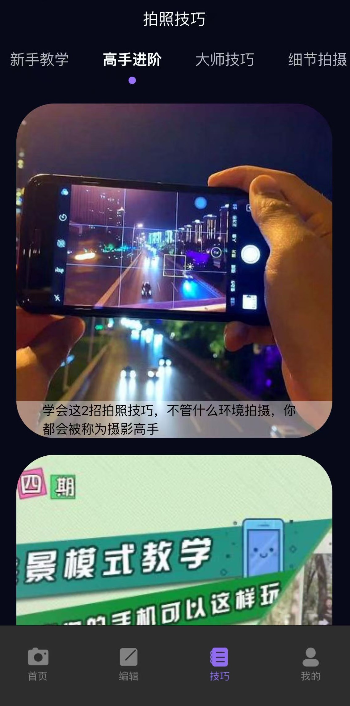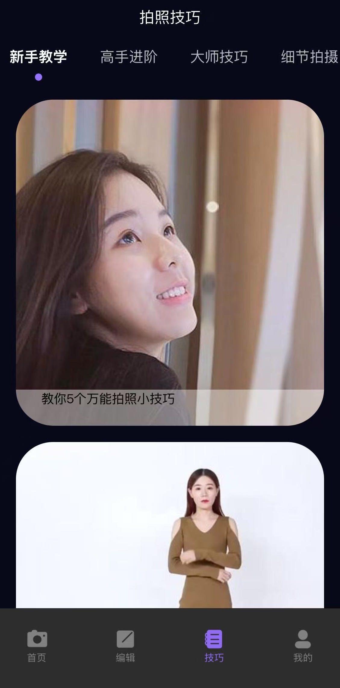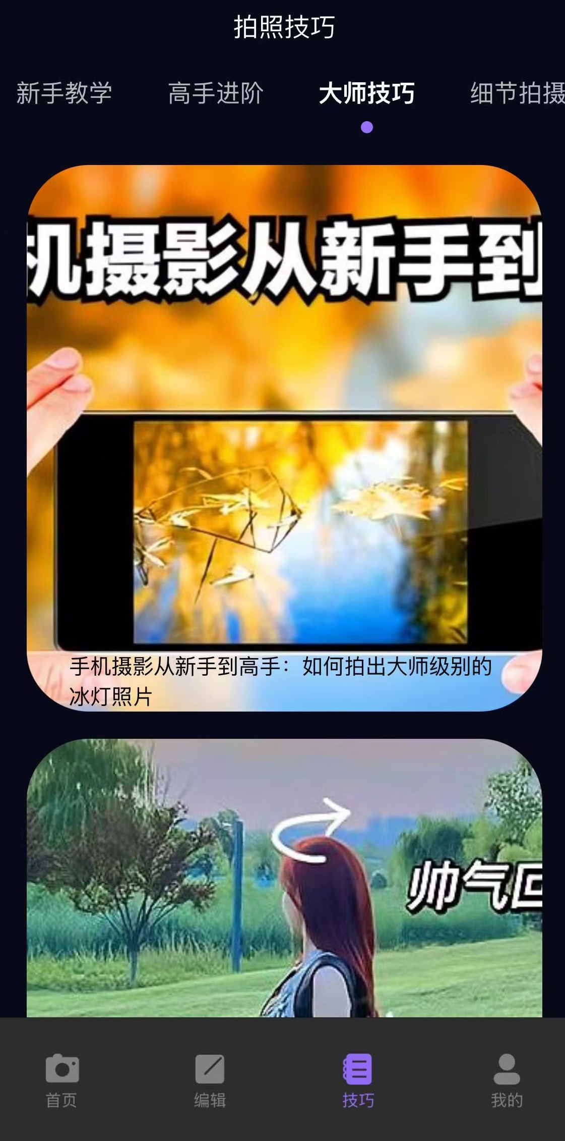 新手:按顺序学习 新手教学 → 高手进阶 → 大师技巧 → 细节拍摄
