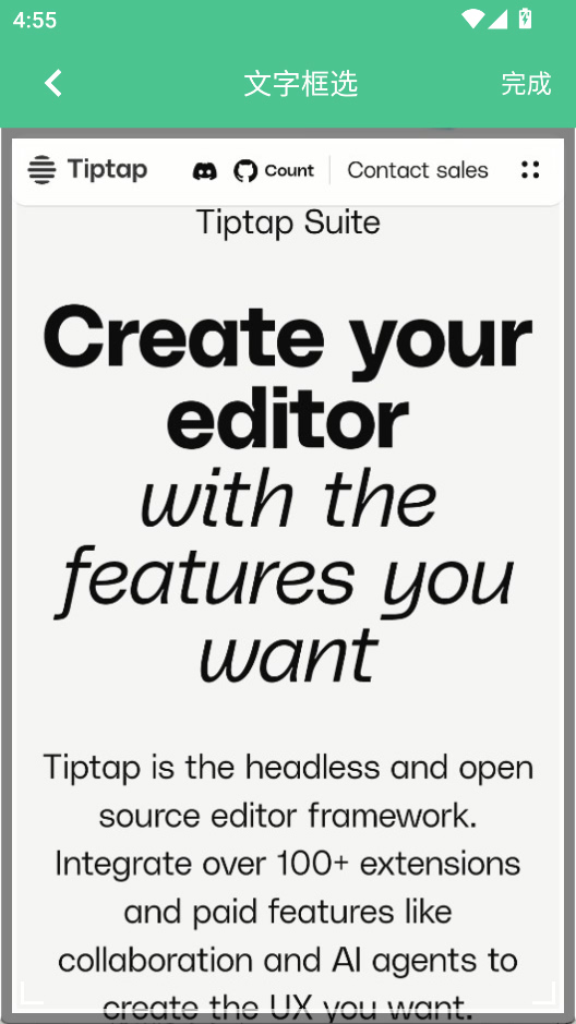 2、框选文字区域,点击完成