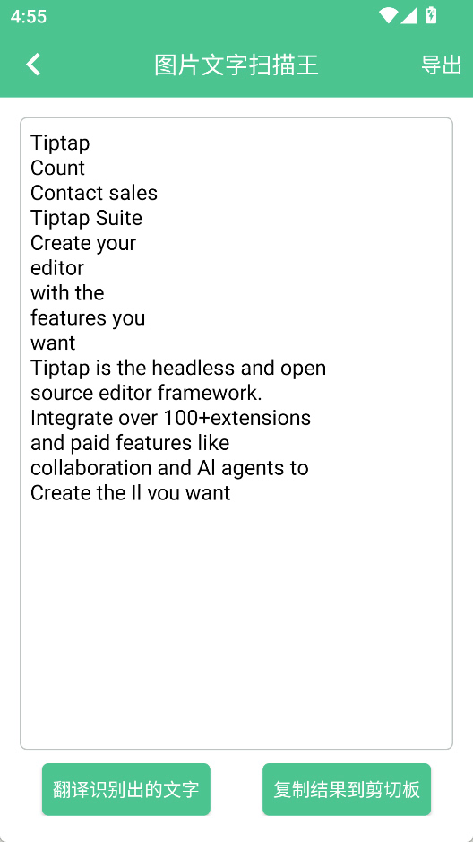 3、识别结果可以翻译、导出、复制