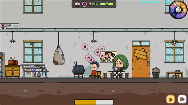 场景中与物品交互、提升属性都会消耗相应的体力/脑力/心力,并使右上角的时间推进一小格。