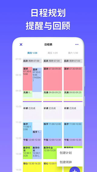 1、独创"时间积木"可视化系统,用彩色模块表征不同任务时长。拖拽即可调整日程安排,直观展示时间分配结构。