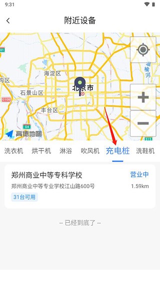 2、定位完成后,在首页可直观查看洗衣机、烘干机、淋浴设备等 12 类民生设施的地理位置、实时在线数量及运行状态。