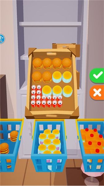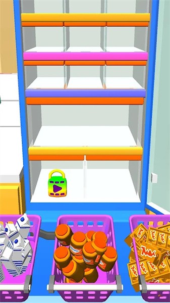 3、开启物品收纳挑战,尝试将所有物品都成功装入冰箱。操作时,需从购物篮中逐一取出物品并进行摆放,直至清空整个购物篮。
