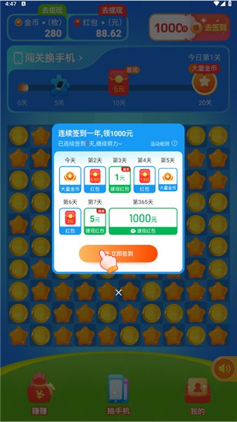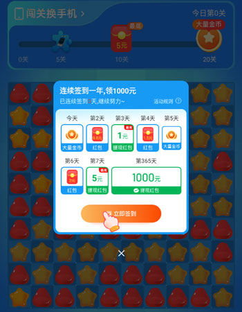 3、设有每日签到功能,务必记得每日签到;在不进行游戏操作的情况下,只要坚持每日签到,可以累积获得一笔数额可观的红包。