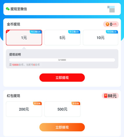 5、积累的红包需要达成一定数目才能够兑换获得哦!