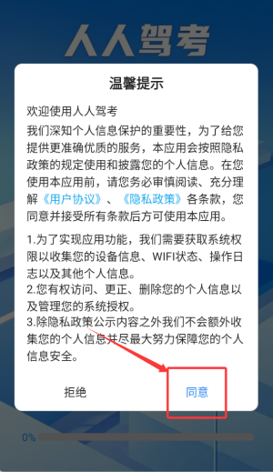 1、首次使用需点击同意用户协议,并进入应用主界面,开启学习流程。