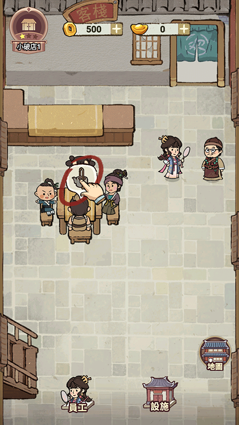 4、员工管理:招聘伙计、厨师、账房先生等员工。培训员工提升技能,合理安排岗位,让客栈高效运营。