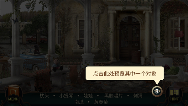6、若寻找困难,点击旁边的 “hint” 按钮,可让某一个隐藏物体凸显出来,降低寻找难度。