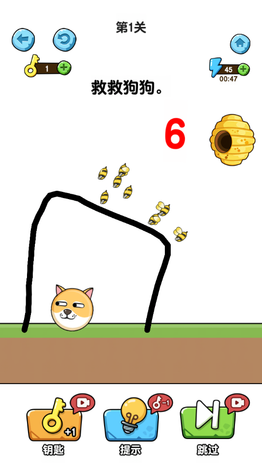 2、画线玩法趣味性强,可免费体验所有内容;每关成功解救小狗后,能获取大量实用道具。