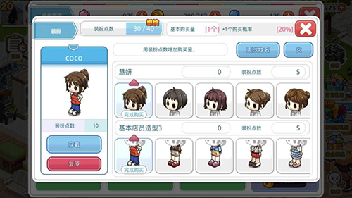 2、店员换装:这个在前期跟着任务走买的衣服就行,后期金币多了再换也可以。