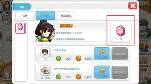 2、每日任务:每日10点刷新,建议每天都完成,因为这个任务完成相对简单,给的奖励多,就是个福利任务,不完成很亏的。
