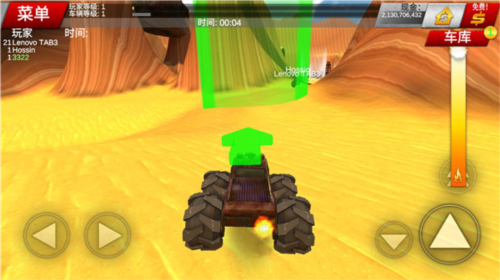 4、如下图所示:左右两侧简单易懂的操作按钮,点击即可控制车辆前行,尽情演出特技并探索世界