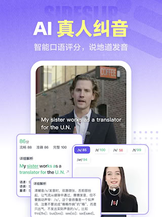 1、首创真人实景拆解音节:国内首创"真人外教实景拆解音节"的学习模式。借助真人出镜的口型、表情与肢体动作,使单词记忆更为立体直观,有助于掌握地道发音。