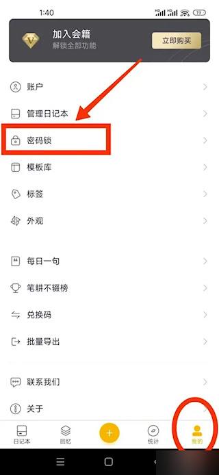 1、在移动设备上启动应用,进入个人中心并选择密码保护功能。