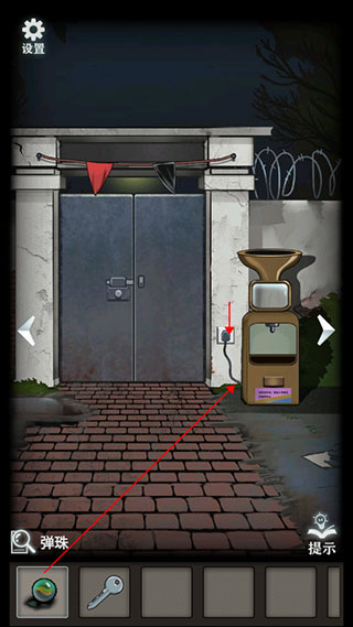 8、找到门口的机器并连接,将之前获取的弹珠放入机器中,推进解谜进程。
