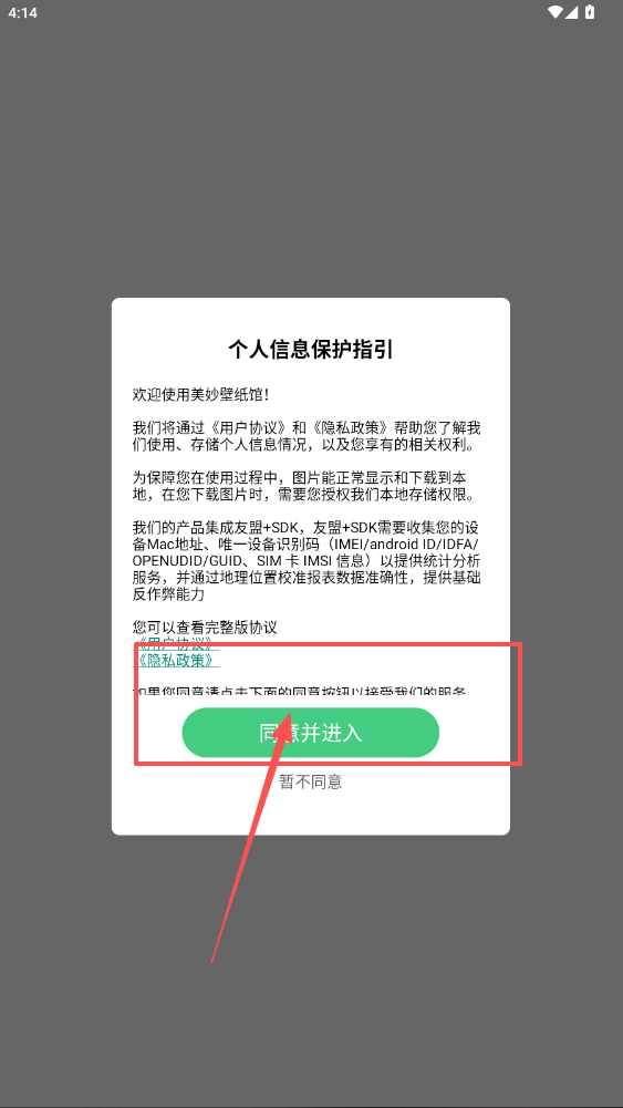 2、安装完成后,点击进入软件,在跳出的页面点击“同意并进入”