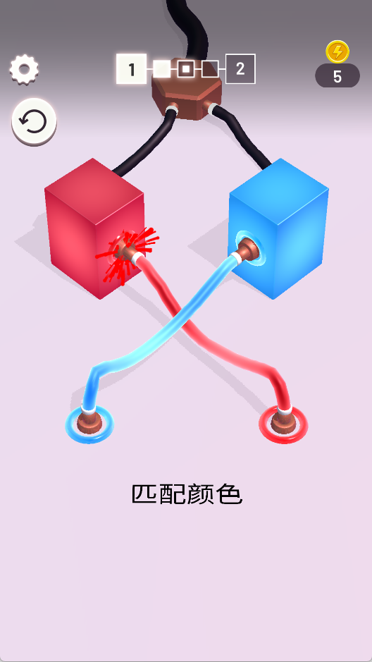 5、基础操作:手指按住电线一端拖动,将其接入对应接口形成闭合回路,注意同色对接,异色不交叉。