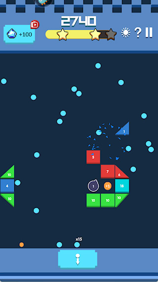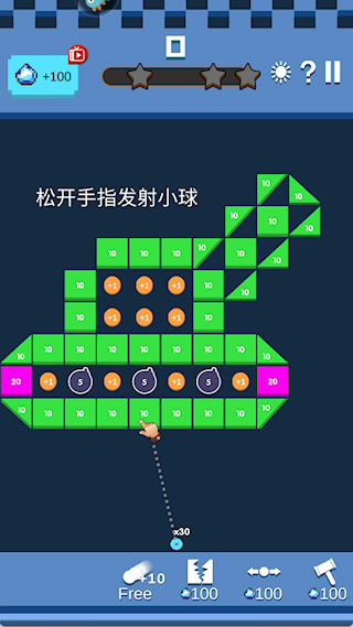 3、挑战关卡:逐个挑战精心设计的超300个关卡,摸索不同关卡的砖块布局特点,制定击破策略。