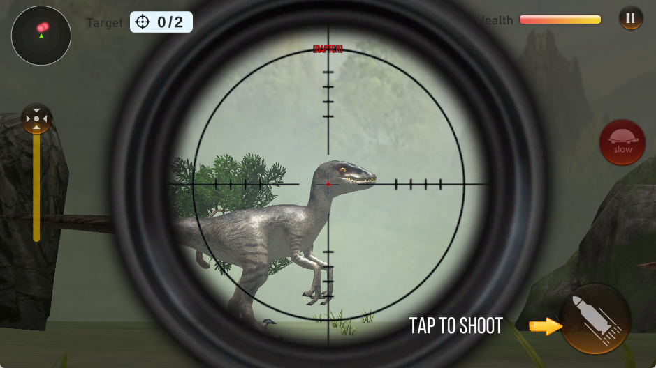 2、目标锁定:发现恐龙后,滑动屏幕调整视角,将准心对准恐龙进行目标锁定。