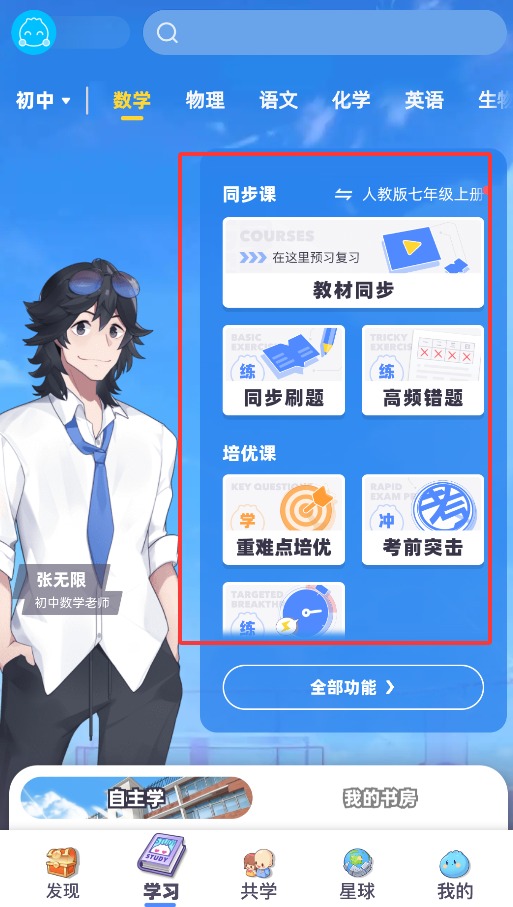 2、同步教材:覆盖小初高全学科,精准对应校内进度,支持知识点独立学习与智能难度调节,满足预习复习全场景需求。