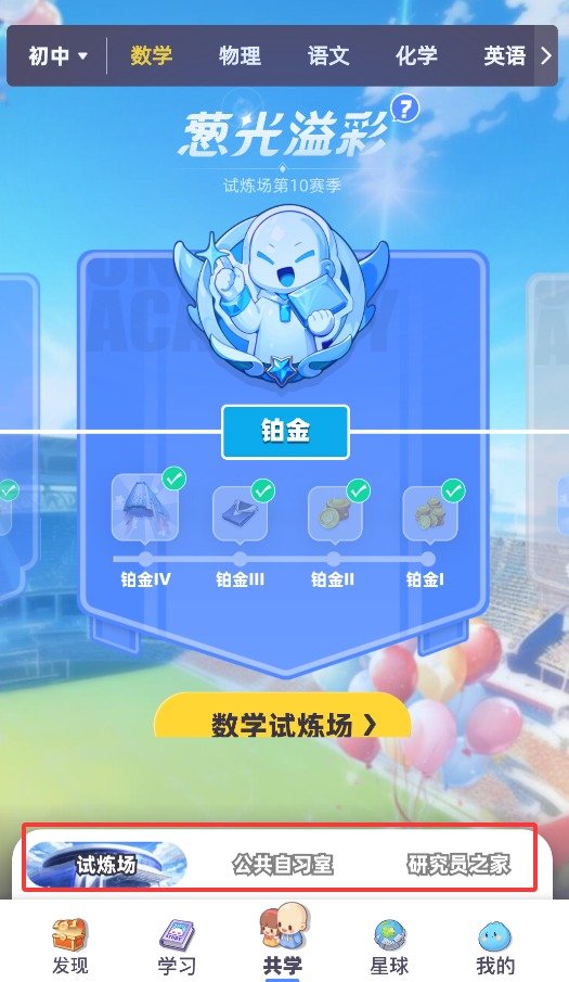 3、共学中心提供试炼场挑战、公共自习室及研究院之家等互动学习场景。
