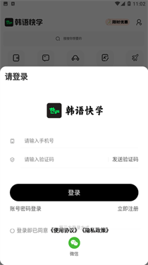 2、进入登录界面,可选择用手机验证码、微信账号登录,也能新注册账号登录。