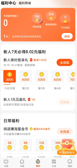 5.根据签到,打卡,阅读,听书等方式实现看书也可以赚零花钱。