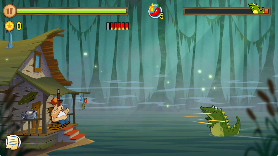 Swamp Attack是一款射击防御游戏,玩家扮演小木屋的主人,在沼泽中抵御鳄鱼、浣熊、乌龟等动物和僵尸、外星人的进攻。游戏有着独特画风、激烈音效与悠闲背景音乐,营造出别样氛围,可以使用猎枪、喷火器等多种武器,配合装备升级系统,在数百个关卡中体验刺激又轻松的塔防乐趣。