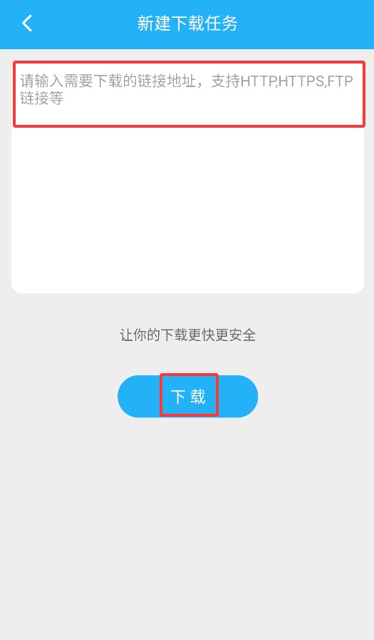 2、在首页点击新建下载任务按钮,即可进入链接输入界面。
