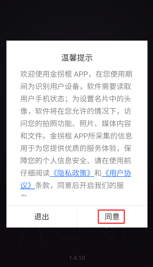 1、首次启动应用时,请点击弹窗中的同意选项,方可进入主界面开始使用。