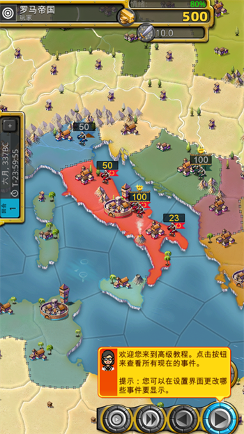 2、【扩张策略选择】—— 初期优先通过外交结盟巩固周边环境,中期以掠夺资源强化自身,后期组建大规模军队攻占敌方城市,逐步扩大帝国版图。