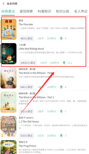 3、主题阅读与点读:提供多主题分类及高质量有声资源,支持在线浏览优质绘本;配备便捷点读功能,帮助掌握标准发音。