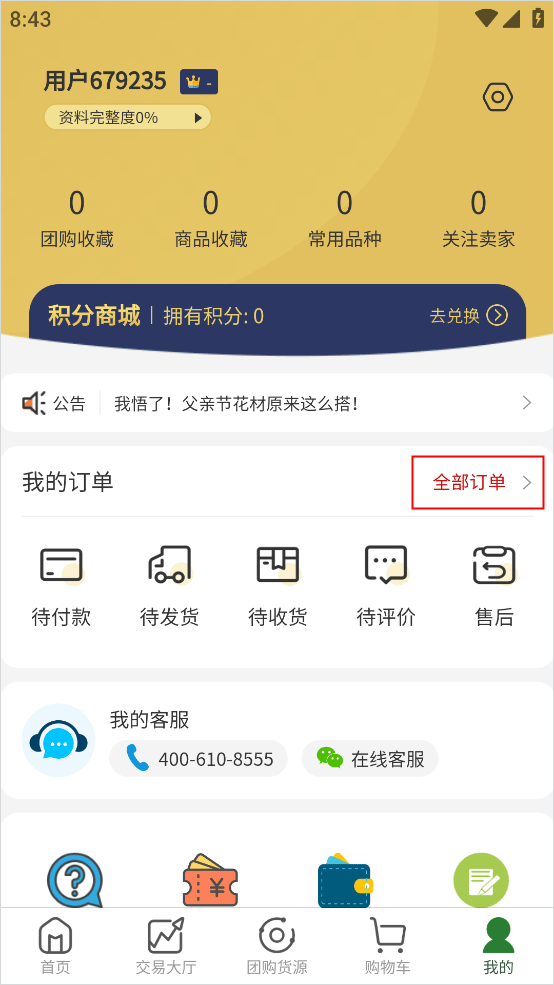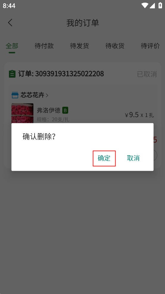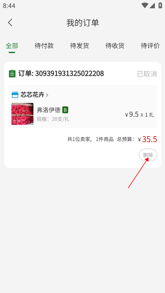 2、进入【全部订单】页面,找到需要删除的订单记录;