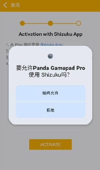 2、非 root 设备需先下载并启动 Shizuku 软件,可通过无线调试、ADB 等方式激活 Shizuku,再打开 Panda Gamepad Pro 点击【需要激活】;