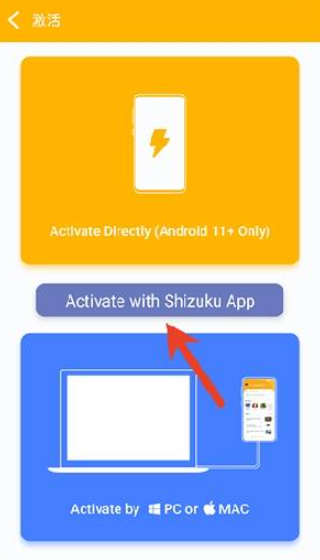 3、在弹出选项中点击【使用 Shizuku 进行激活】,进入激活流程;