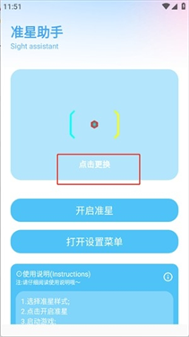 4、进入准星助手页面后,点击 “更换” 按钮,即可切换准星样式。