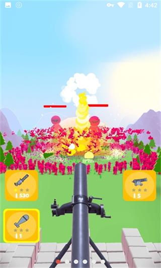 2、敌人发起进攻时,可切换不同类型的武器,对准敌人发射炮弹,精准打击来犯之敌。