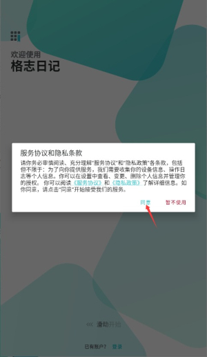 1、首次启动应用时,系统会显示用户协议和隐私政策,阅读后点击同意按钮进入主界面。