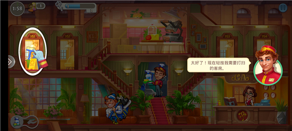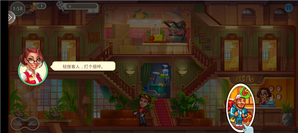 1、进入游戏首页,第一个关卡玩家需要帮助2位客人入住;